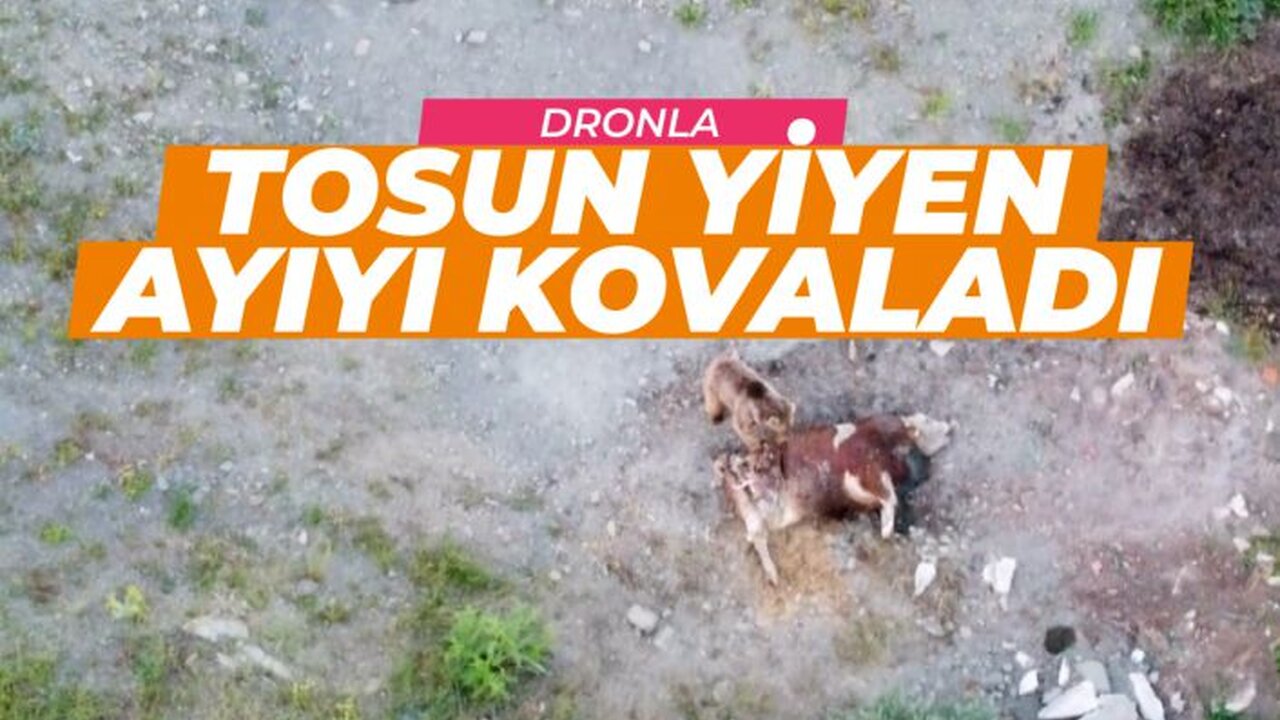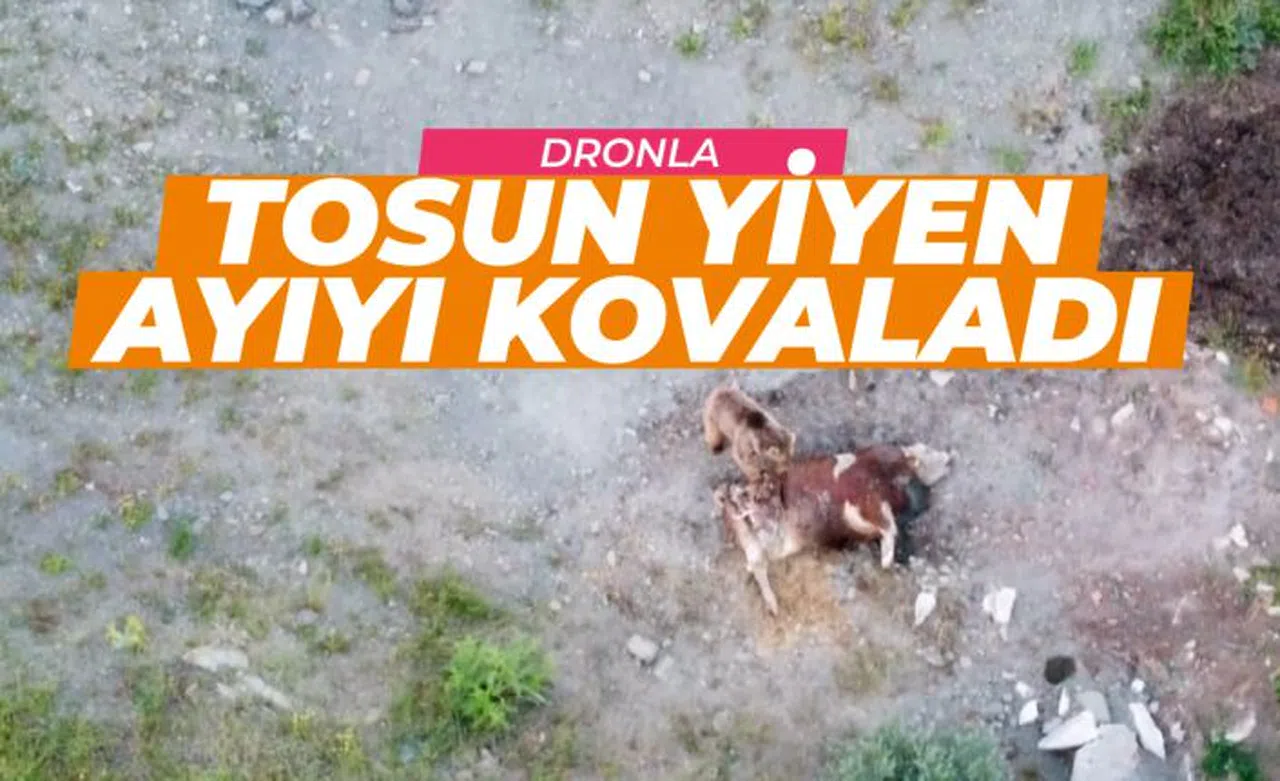 Gümüşhane’nin Kelkit ilçesinde telef olan tosunun kokusunu alarak köye kadar inen ayıyı bölgede çekim yaparken fark eden Serhat Akman, ayıyı dronla kovaladı.