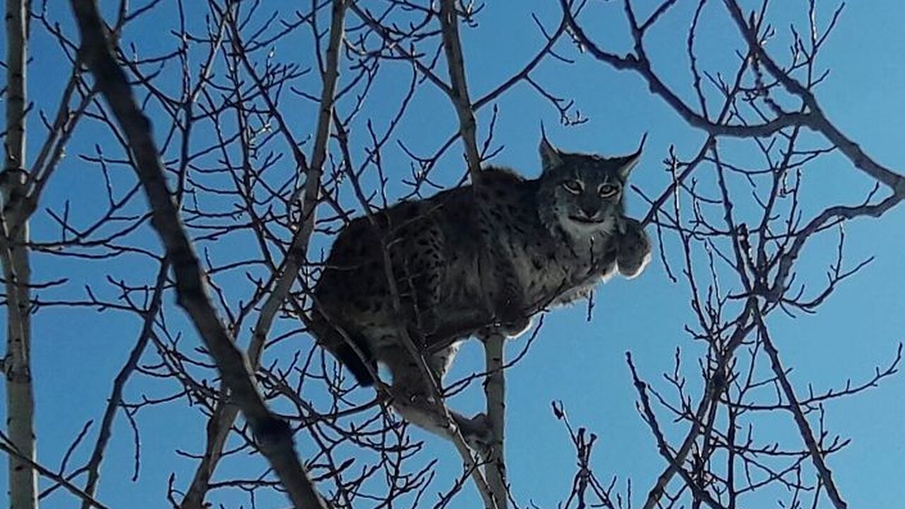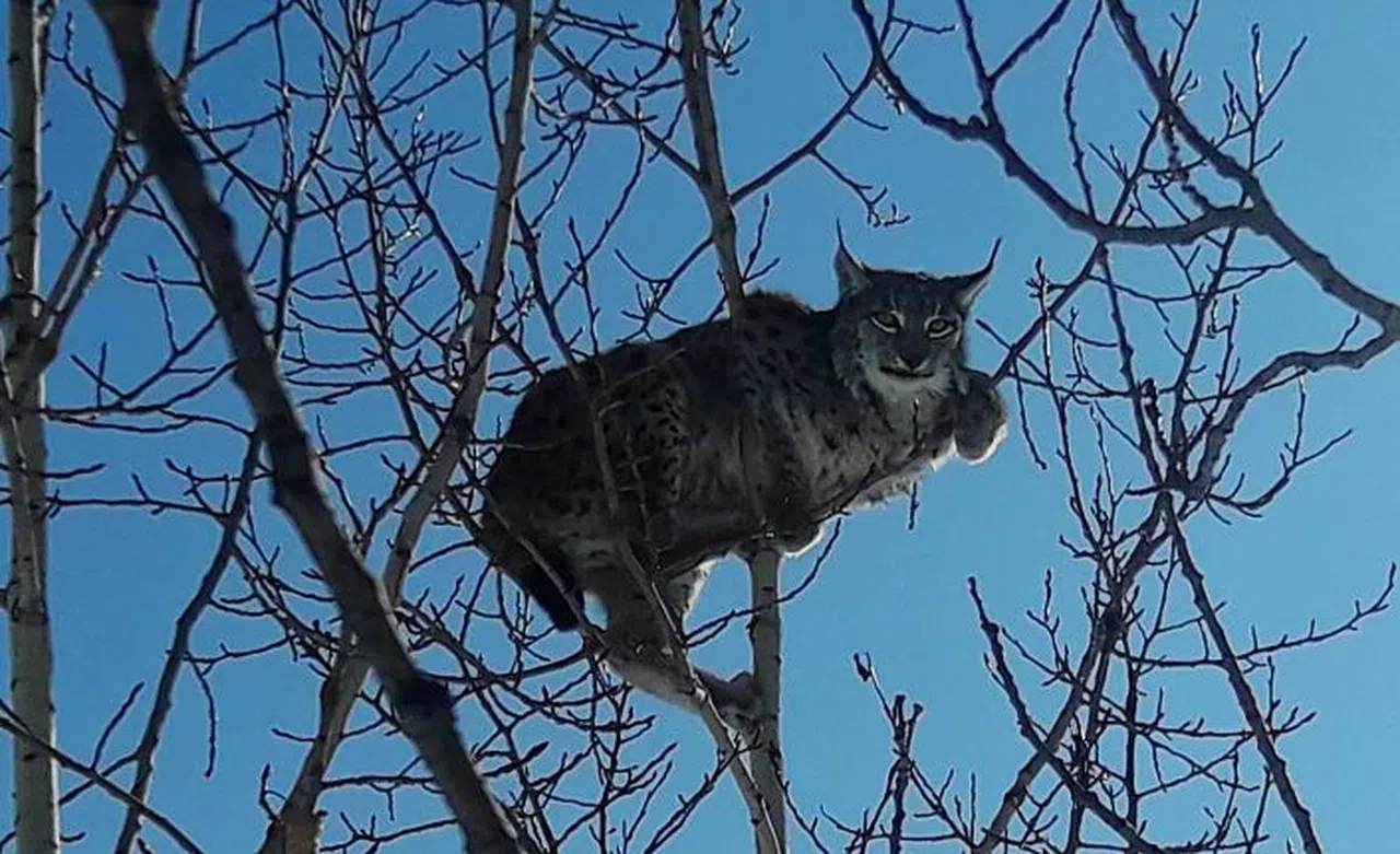 Gümüşhane Haberleri Videolar Gümüşhane Yayladere'de köpekten kaçan ‘vaşak’ kavağa tırmandı