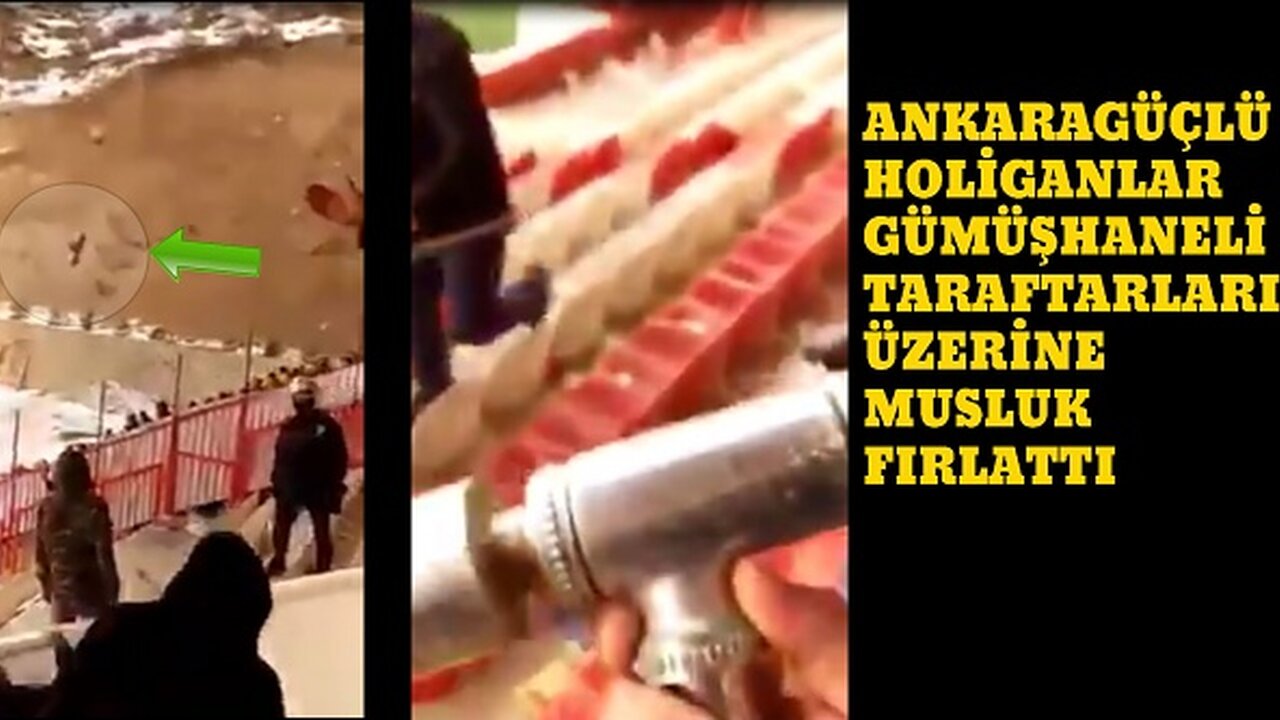 Maçın 25.dakikasında Gümüşhanespor’un 2-0 öne geçmesini hazmedemeyen MKE Ankaragüçlü holiganların önce ağza alınmayacak küfürler savurduğu, daha sonra da hem sahaya hem de hemen yanlarındaki tribünde bulunan Gümüşhanespor taraftarlarına kırık koltuk parçalarını fırlatarak resmen taraftarları ölümle burun buruna getirdikleri ifade edilerek, “Ayrıca stadyumun tuvaletlerini kırıp döken, söktükleri muslukları da Gümüşhane tribünlerine atan holiganlar insan hayatını hiçe saymıştır. Sökülen koltukların bir kısmı Sayın Bakanın ve milletvekillerinin bulunduğu protokol tribünlerine kadar ulaşmış, korumalar şemsiyelerle bu parçaların Sn.Bakan, milletvekilleri ve vali beye ulaşmasını engellemeye çalışmışlardır. Maç öncesi haftası boyunca, Gümüşhane ve Bayburt’a yönelik küçümseyici söylemlerde bulunup Gümüşhanelileri provoke etmek için ellerinden geleni yapanlar bunu başaramayınca maç içinde olaylar çıkarmak istemiş ve maçın yarım kalması için ellerinden geleni yapmışlardır. Ama sağduyulu Gümüşhanespor taraftarları bu oyuna gelmemiştir. Gümüşhanespor ile şampiyonluk mücadelesi verilirken kazanalım da nasıl kazanırsak kazanalım zihniyeti ile yola çıkanlar önce devlet kurumu olan MKE’den sponsorluk adı altında yıllardır milyonlarca TL alanlar önce bu paraları nereye harcadıklarının hesabını versinler. Koskoca kulübü 5 sene içinde önce süper ligden 1.lige, sonra 1.ligden 2.lige düşmesine sebep olanlar sorgulasınlar. Türkiye Futbol Federasyonu’nun ligdeki her maçında olay çıkaran ve suç makinesi haline gelen Ankaragücüne’ne ceza vereceğini merak ediyoruz. Tabi ki maçın TFF Temsilcisi olayları raporuna gerçekçi biçimde yansıtırsa” denildi.