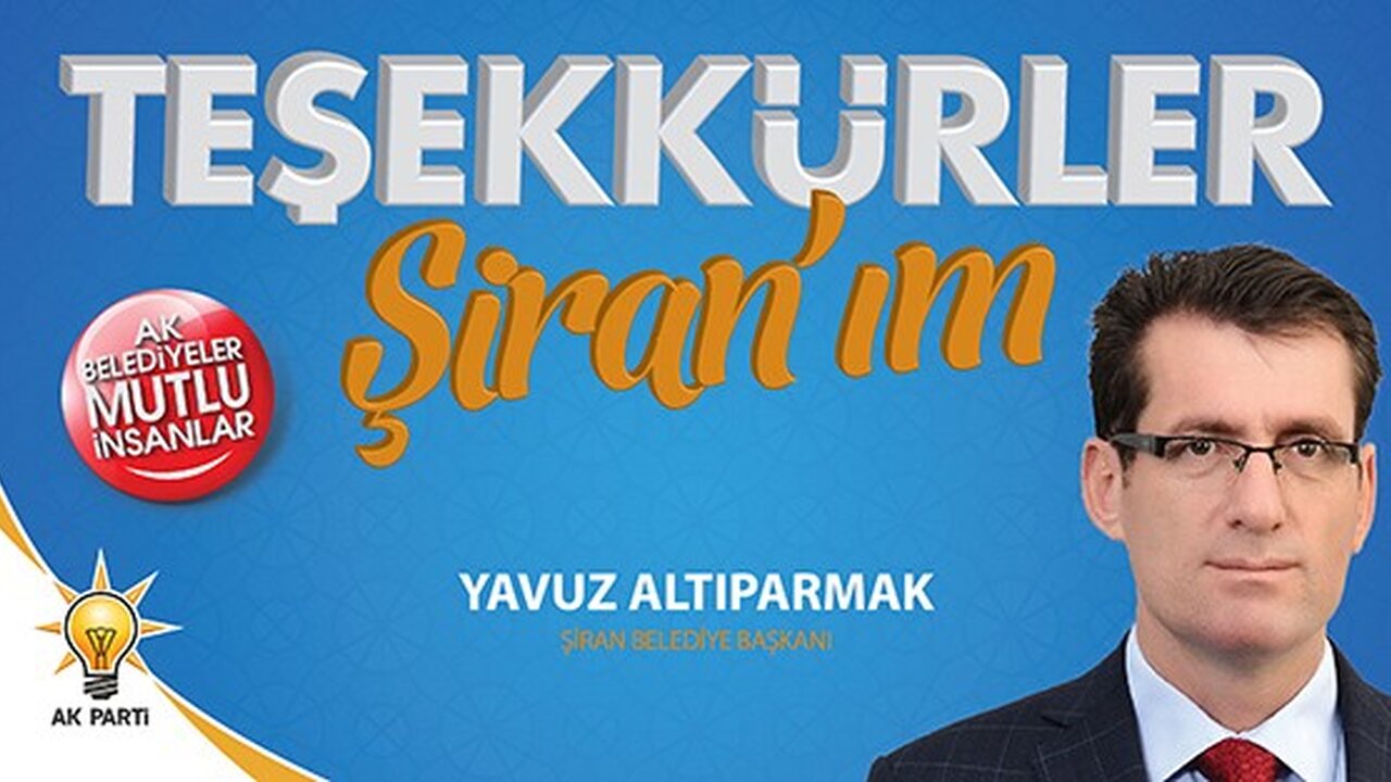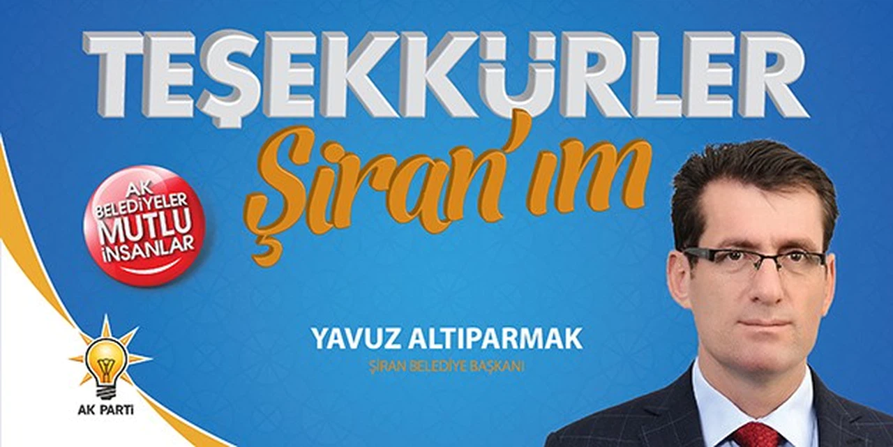 Pazar günü yapılan yerel seçimlerde güven tazeleyerek ikinci kez Şiranlı seçmenden güvenoyu alan Belediye Başkanı Yavuz Altıparmak, bir teşekkür mesajı yayımladı.
