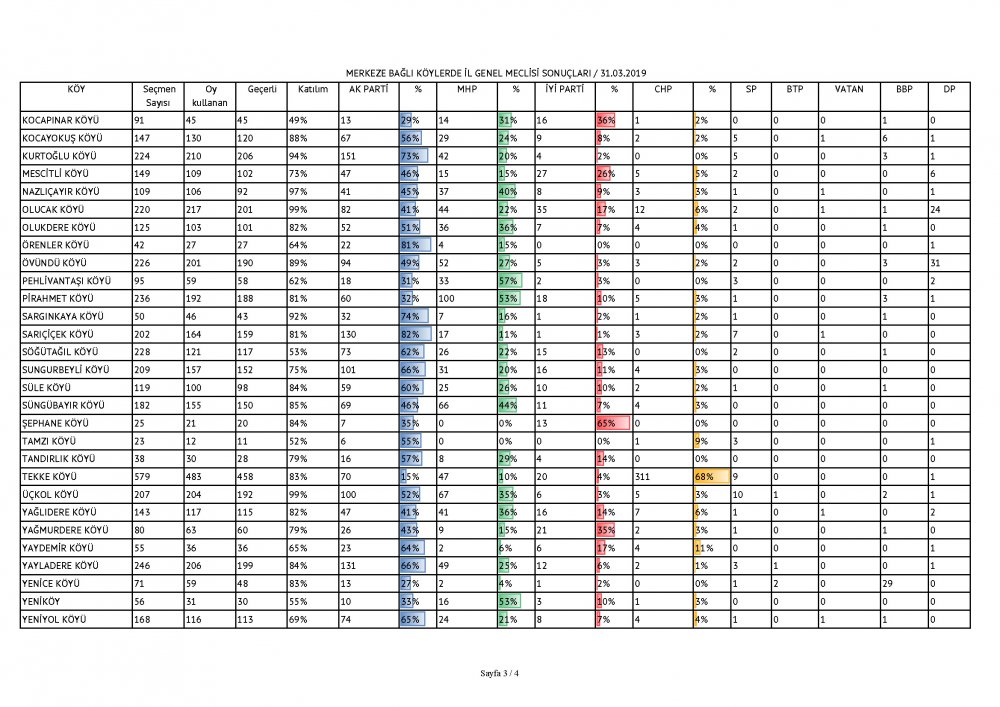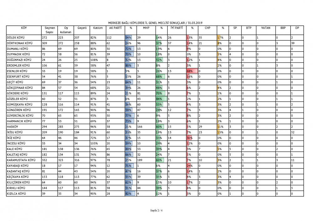 Toplam 13 bin 613 seçmenin bulunduğu 92 köyde 10 bin 891 geçerli oy sayılırken bu oyların yüzde 46'sını AK Parti, yüzde 30'unu MHP, yüzde 11'ini İYİ Parti, yüzde 8'ini de CHP aldı.